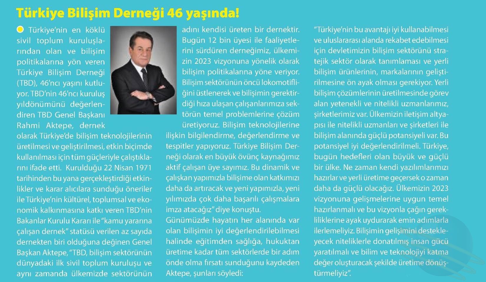 • Türkiye Bilişim Derneği 46 Yaşında – E-BELEDİYE DERGİSİ