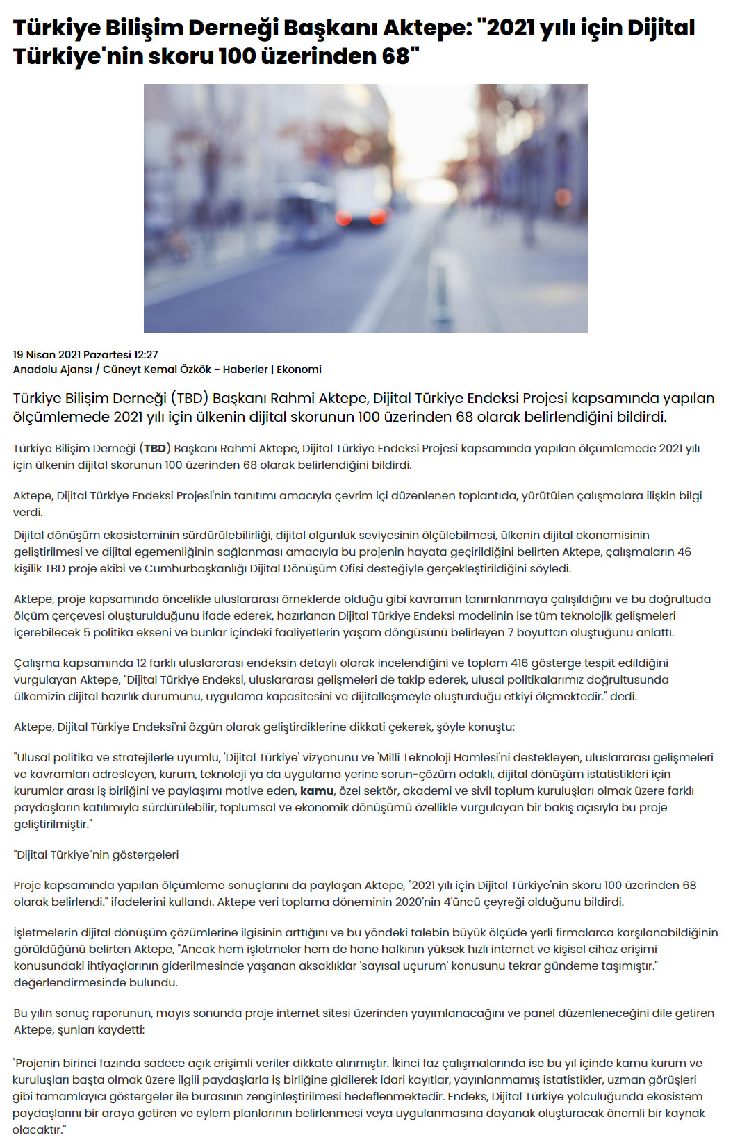• Türkiye Bilişim Derneği Başkanı Aktepe: “2021 yılı için Dijital Türkiye’nin skoru 100 üzerinden 68” – HABERLER