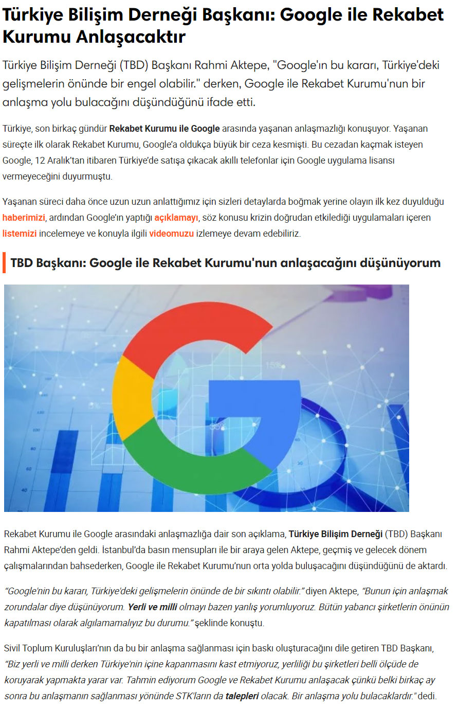 Türkiye Bilişim Derneği Başkanı: Google ile Rekabet Kurumu Anlaşacaktır – WEBTEKNO