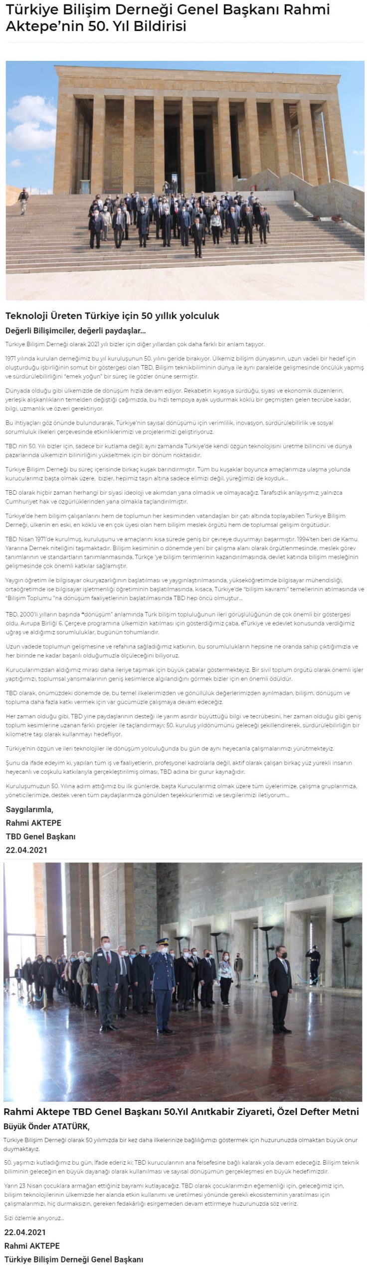 • Türkiye Bilişim Derneği Genel Başkanı Rahmi Aktepe’nin 50. Yıl Bildirisi – BT HABER