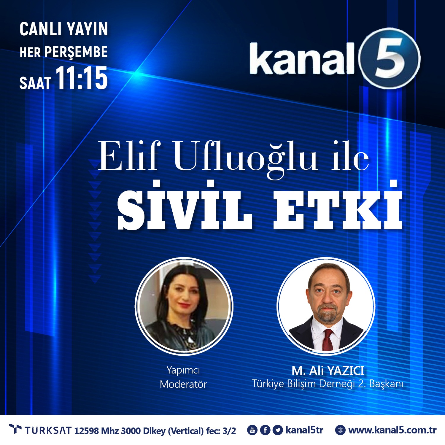 Elif Ufluoğlu’nun hazırlayıp sunduğu “Elif Ufluoğlu ile Sivil Etki” programının 10 Eylül Perşembe günkü konuğu; Türkiye Bilişim Derneği 2. Başkanı M. Ali Yazıcı oldu. Derneğin genel yapısı, faaliyetleri ve projeleri ilgili tüm konular detaylarıyla konuşuldu.