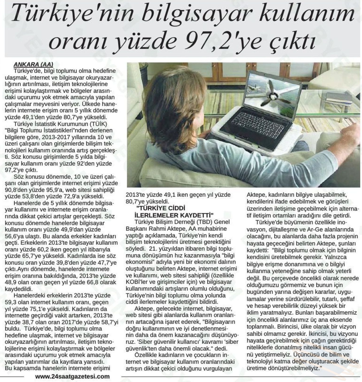 • Türkiye’nin Bilgisayar Kullanım Oranı Yüzde 97,2’ye Çıktı – ANKARA 24 SAAT