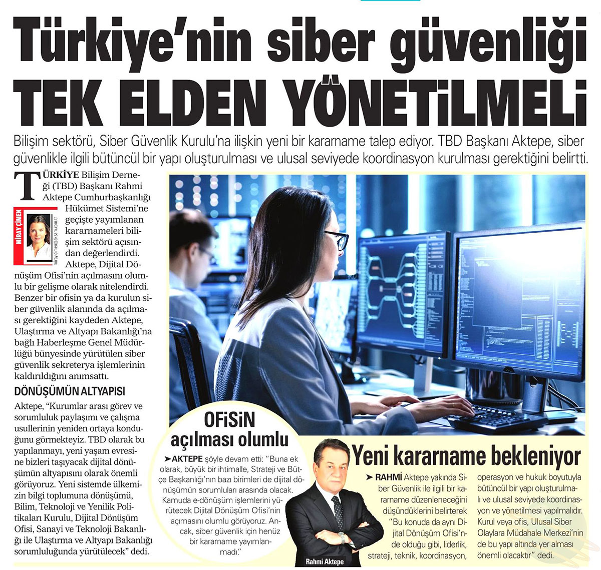 • Türkiye’nin Siber Güvenliği Tek Elden Yönetilmeli – AKŞAM GAZETESİ