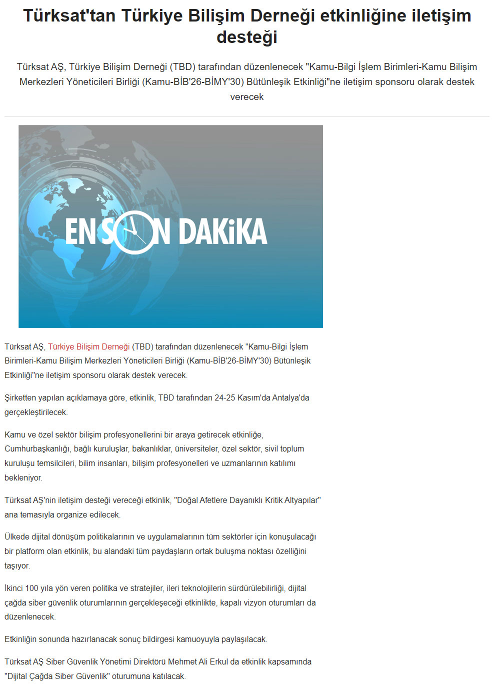 Türksat’tan Türkiye Bilişim Derneği Etkinliğine İletişim Desteği – EN SON DAKİKA