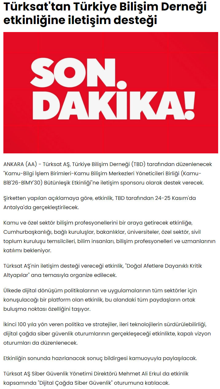 Sonraki Türksat'tan Türkiye Bilişim Derneği Etkinliğine İletişim Desteği - AÇIK SÖZ