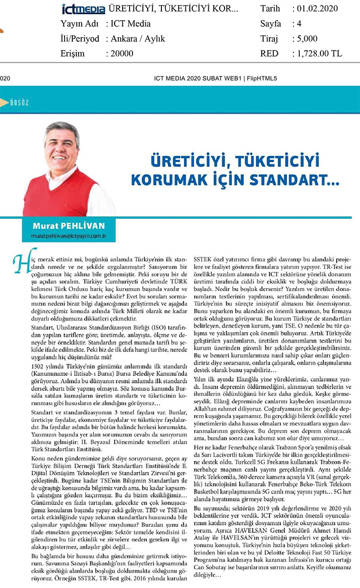 • Üreticiyi, Tüketiciyi Korumak için Standart – ICT MEDIA