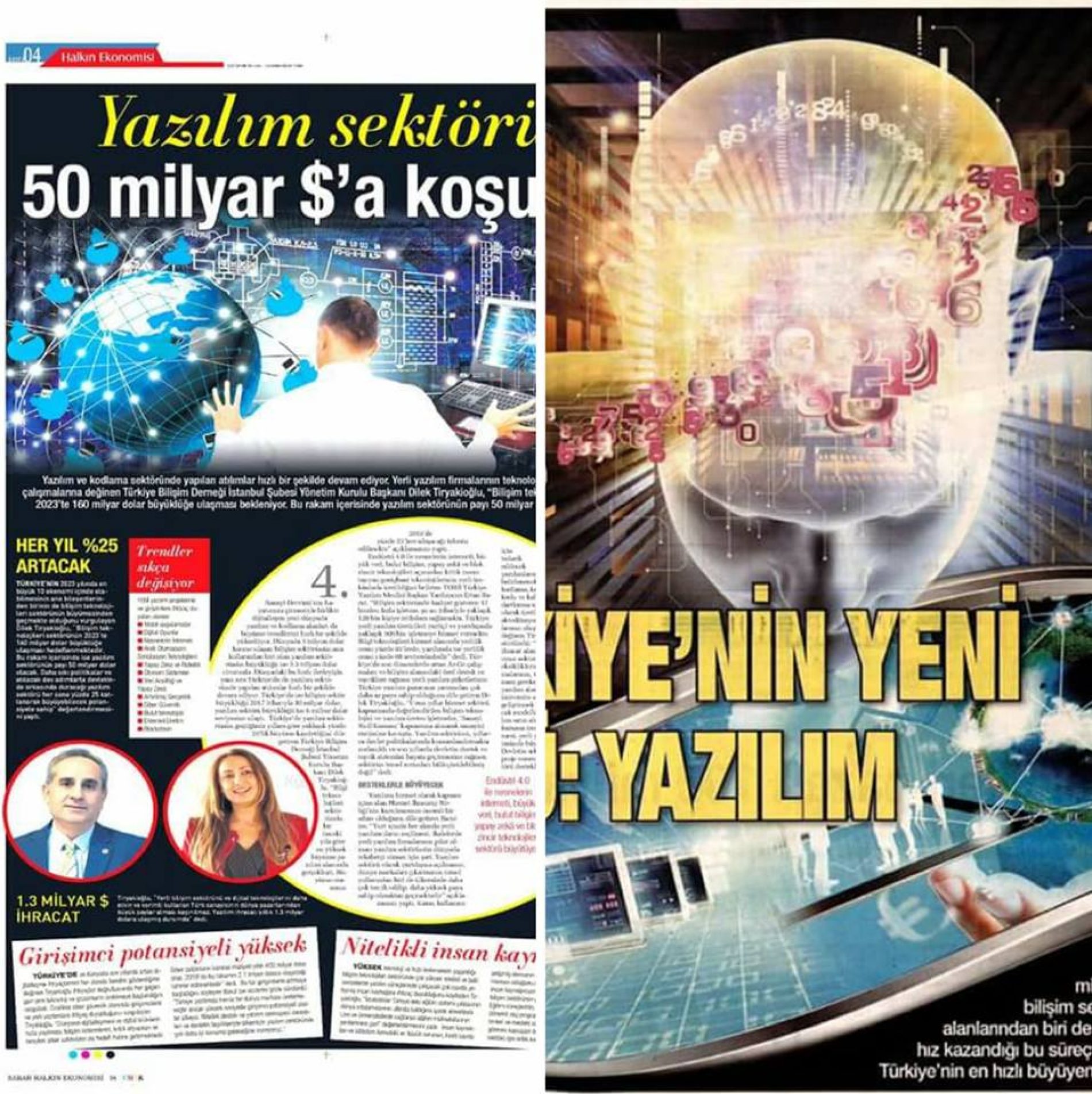 Yazılım ve kodlama sektöründe yapılan atılımlar hızlı bir şekilde devam ediyor. Yerli yazılım firmalarının teknolojilerini geliştirme çalışmalarına değinen Türkiye Bilişim Derneği İstanbul Şubesi Yönetim Kurulu Başkanı Deniz Tiryakioğlu, “Bilişim teknolojileri sektörünün 2023’te 160 milyar dolar büyüklüğe ulaşması bekleniyor. Bu rakam içerisinde yazılım sektörünün payı 50 milyar dolar olacak” dedi