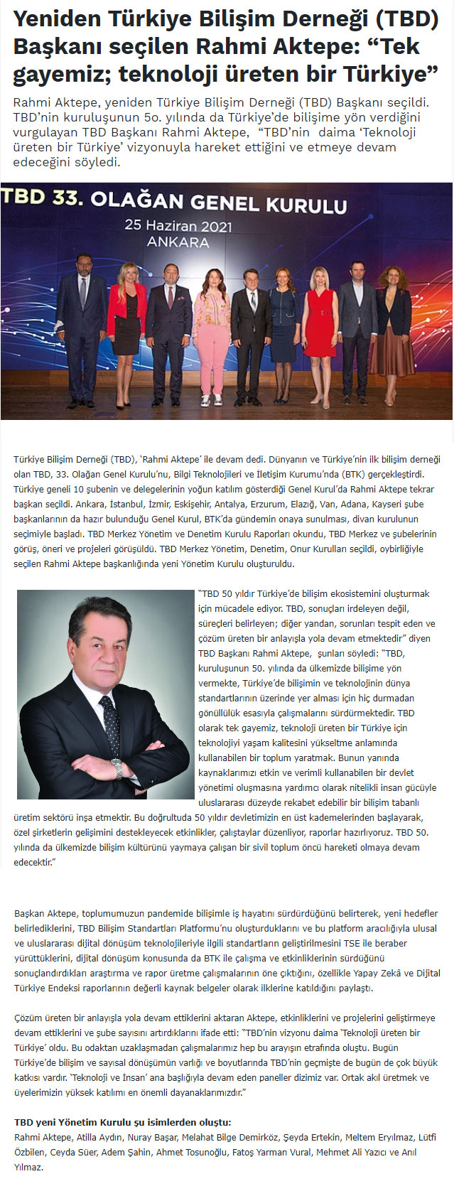 • Yeniden Türkiye Bilişim Derneği (TBD) Başkanı seçilen Rahmi Aktepe: “Tek gayemiz; teknoloji üreten bir Türkiye” – KOBİ EFOR