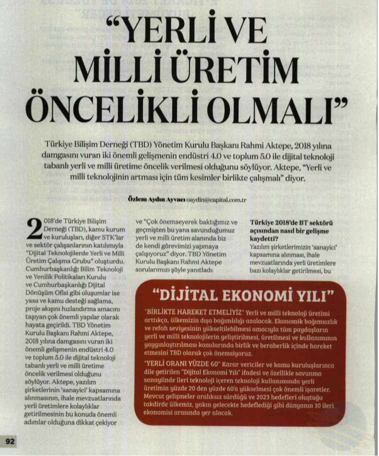 • Yerli ve Milli Üretim Öncelikli Olmalı – CAPİTAL